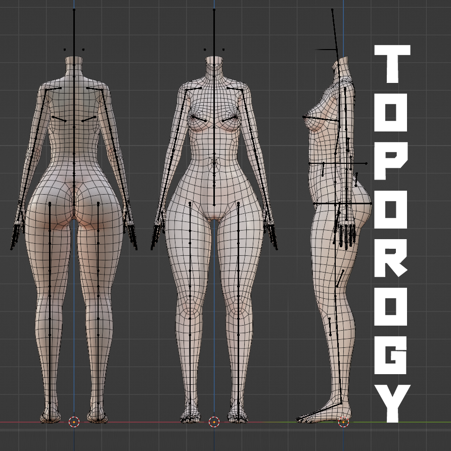 • All original shapekeys are kept, but please remember - this base has low polygons, so, you can't make anything TOO BIG. It will just look square.